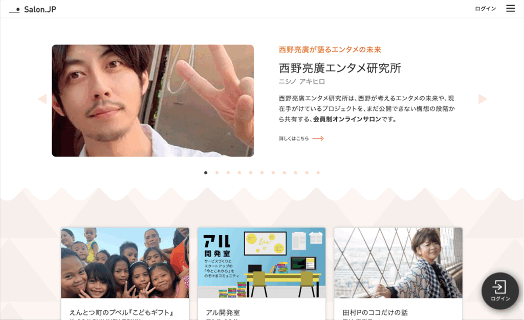 キングコング・西野亮廣さんが主宰するオンラインサロン「salon.jp」のWebサイトデザインを担当いたしました。